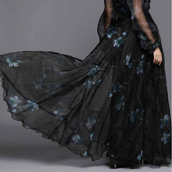 Black & Blue Power Shoulders Floral Printed Maxi Dress