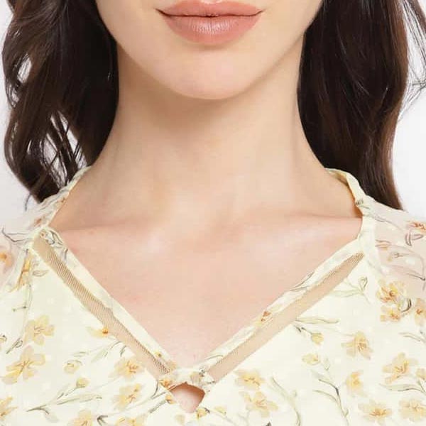 Show your exceptional style with this A-line dress, beautifully tailored with premium layered fabric, detailed with floral print design, half sleeves, V-neck, and amazing fit.